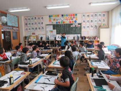 「人」という字を書いています。左右のはらいをバランスよく書くことを意識していました。