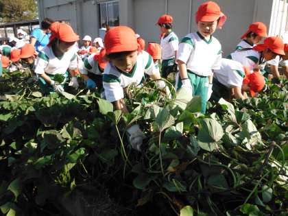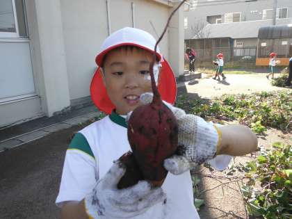 1年生がいもほりをしています。大きいおいもにびっくりです。