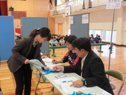 全職員で対応するため、5年生以下の子どもたちは早帰りし、6年生が会場準備から健診補助まで、活躍してくれます。