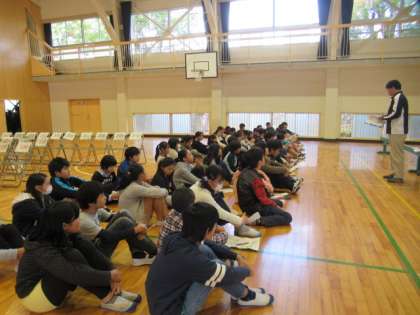 係ごとに、打ち合わせをします。各会場へわかれていく子どもたち。残った誘導係は、直接新1年生に接するため配慮を要する重要な仕事です。真剣に注意事項を聴いていました。
