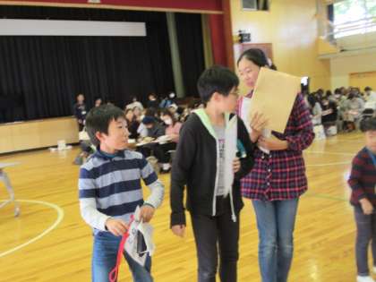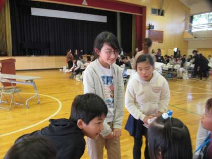 新1年生5人1組を、2〜3人の6年生が誘導していきます。