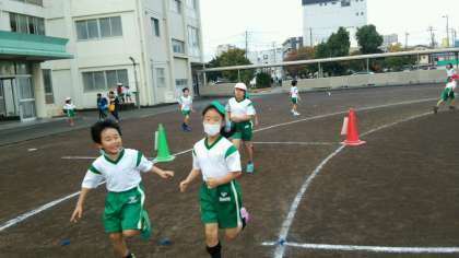 かけ足記録会に向けて、低学年の子どもたちも朝から自主的に走っています。この後8時から、全校参加の5分間走があります。