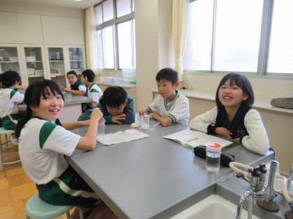 水溶液の学習をしています。一定量の水に、さあ、食塩はどれだけ溶けるでしょう。