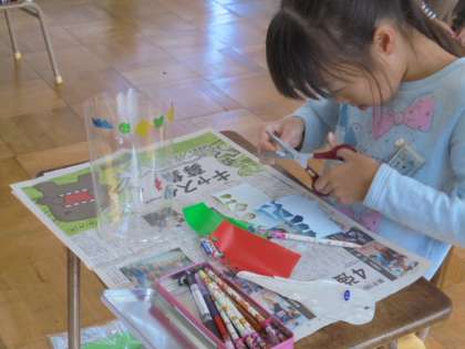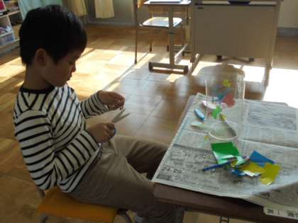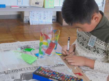 図工の時間です。7組のクリスタルファンタジーが、もうすぐ完成しそうですね。