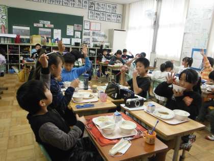 給食の人気メニュー第2位は「揚げパン」でした。「揚げパン好きな人〜?」の問いかけに「は〜い!!」