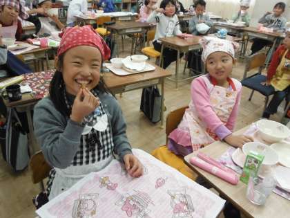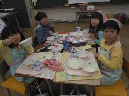 「お魚3匹目」「わたしのおでんにはちくわが3つも入っていたよ。」「前は残していたけれど、今は残さずみんな食べているよ。」1年生はたくさんお話ししてくれます。