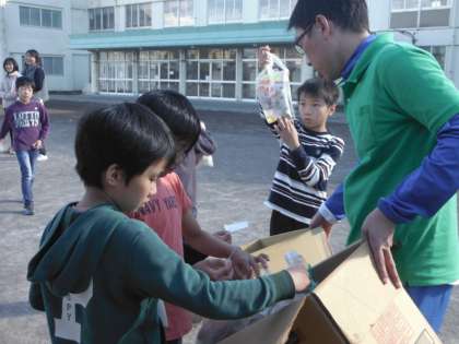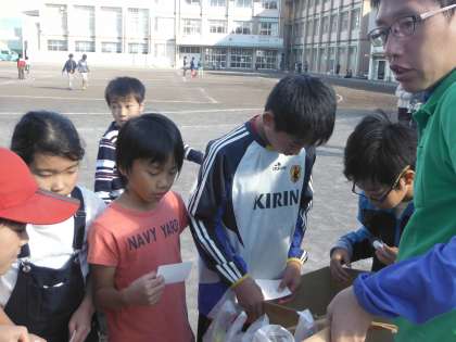 お菓子はどれも同じような詰め合わせなのですが、選ぶ子どもたちの目は真剣そのものです。