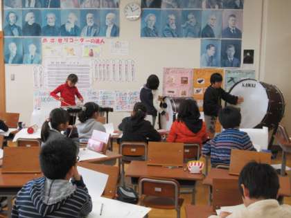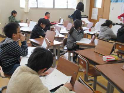友だちがモデルになってくれて、版画の下絵を描いていました。テーマは、演奏する人物です。