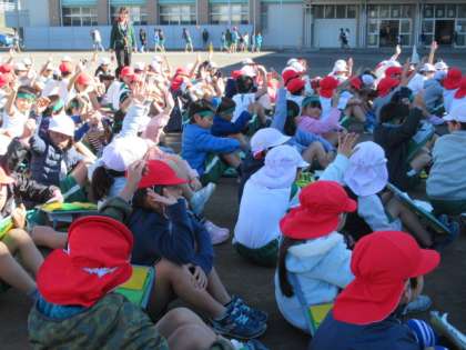 「めあてをもって頑張り抜いた人は?」という先生の問いかけに、たくさんの手が上りました。頑張り抜いた2,5年生に、心からの拍手を送ります。