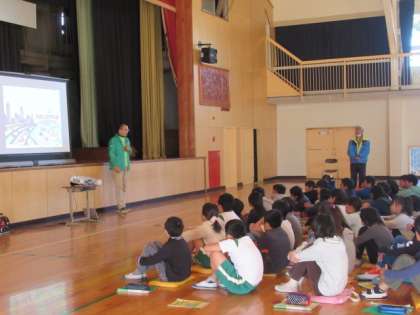 子どもたちは、総合の授業を中心に環境問題について学び、ご家族の協力を得ながら、CO2削減に取り組んできました。今日は、この取り組みを認めていただき、全員が「エコリーダー」の認定証をいただくことができました。これからも、今回学んだことを生活の中で生かしていって欲しいと願っています。