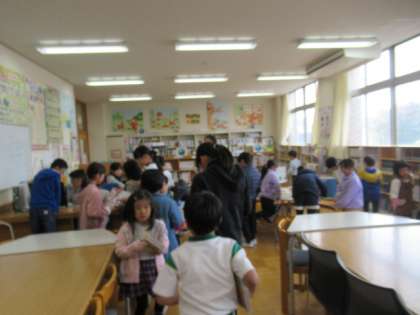 読書の秋です。図書室は、本を借りたり返却したりする子たちで、賑わっていました。