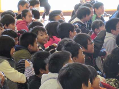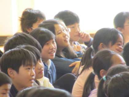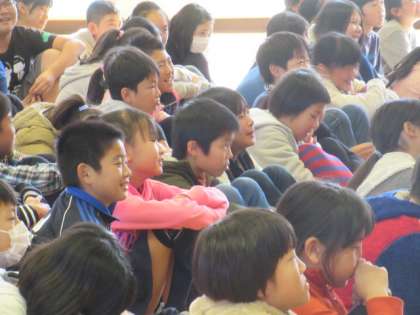 いよいよ、落語を聞かせていただきました。もう、体育館中が笑顔で、笑い声に包まれました。以下、笑顔満開の様子を…。