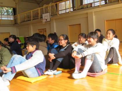 いよいよ、落語を聞かせていただきました。もう、体育館中が笑顔で、笑い声に包まれました。以下、笑顔満開の様子を…。