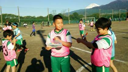 練習したり、腕に誓いを書いたり。線審を務める子どもたちもいます。