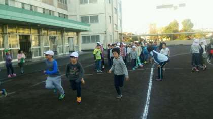 子どもたちは、朝運動に汗を流しました。