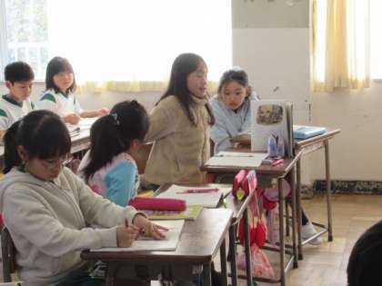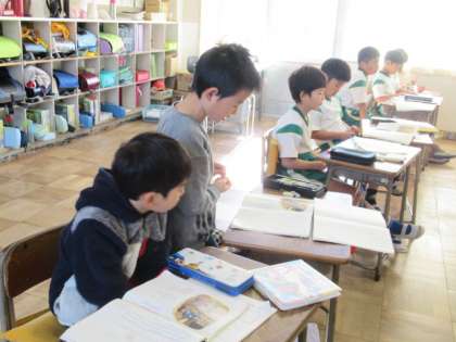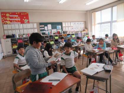 「かさこじぞう」を読んでいます。じさまとばさまが、どんな暮らしをしていたのか、文中から探して想像を広げました。