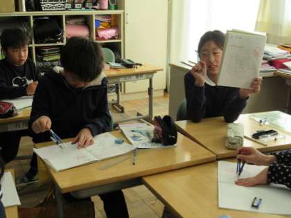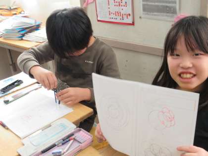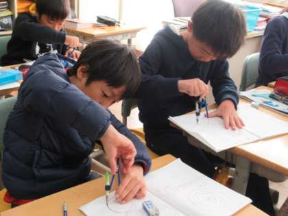 コンパスで円を描く活動を繰り返しています。だんだん、滑らかな曲線で描けるようになってきました。