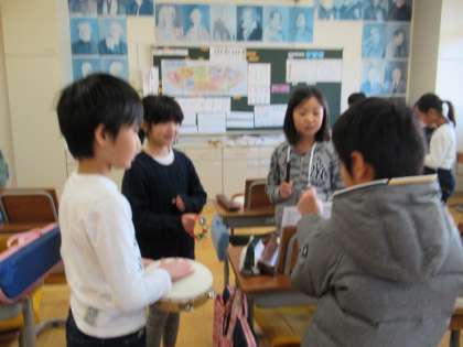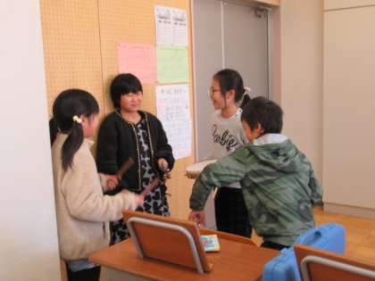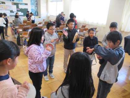 歌いながら、打楽器で演奏をしました。リズムよく、打つことができていました。