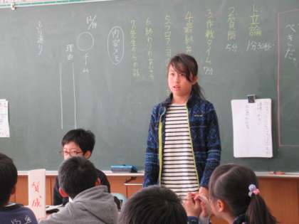 「教室にエアコンを」の賛否をグループに分かれて主張し合う、ディベートをしました。振り返りの段階を見ましたが、観察する側の子どもたちが、両者の主張のよさをしっかりとらえていて感心させられました。