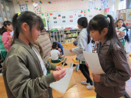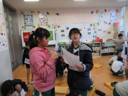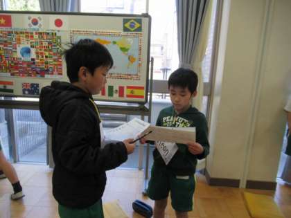 誕生日をたずねる英語ゲームをしています。ゲームで繰り返し月の名前や数字を口にするうちに、楽しみながら自然と覚えていきます。