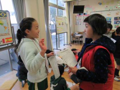 誕生日をたずねる英語ゲームをしています。ゲームで繰り返し月の名前や数字を口にするうちに、楽しみながら自然と覚えていきます。