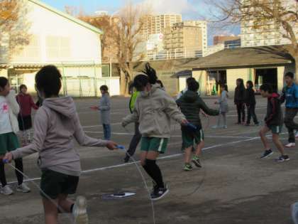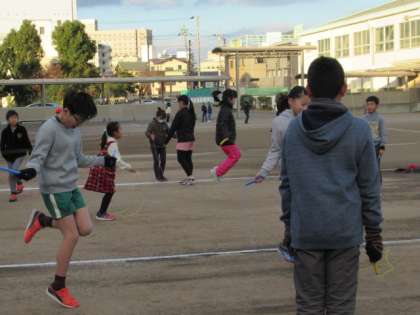 冬季の全校運動、なわとび運動が始まりました。たくさんの子どもたちが、学級の仲間ととともに、技に挑戦しています。