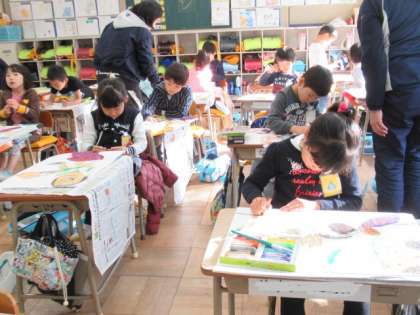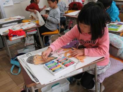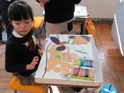 サツマイモ掘りの絵が、ダイナミックに進んでいます。