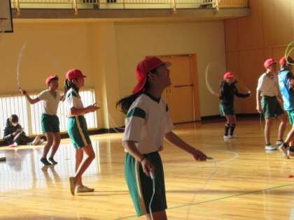 準備運動がてら、なわとびをしていました。さすが高学年は、身のこなしや縄さばきがが巧みです。