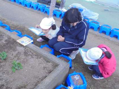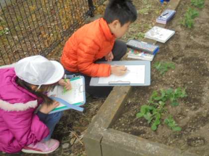 絹サヤエンドウの観察をしました。だんだん成長してきましたね。