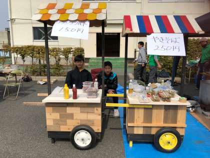 おやじの会のみなさんが焼きそばやフランクフルト、ポップコーンなどの屋台を出してくれています。