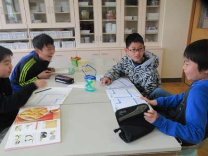 最後の調理実習で、スイーツを作ります。何を作るか、グループごとに相談をしました。