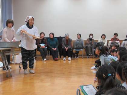 小さな居間は、ちゃぶ台一つで食堂にも勉強部屋にもなり、折り畳んで片付ければ寝室にもなりました。家事は何から何まで手間がかかり、子どもも家族の一員としてよく働いたと教えていただきました。