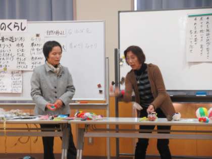 昔の子どもは、身近な物や手作りの物で遊んだそうです。