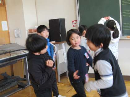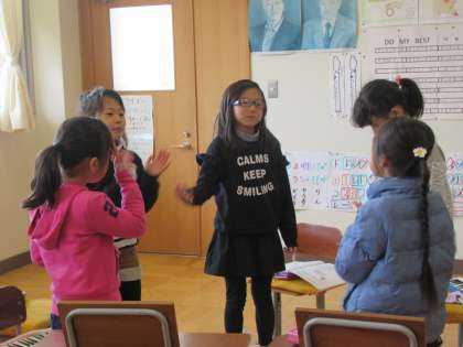 グループを作って、発表の練習をしていました。楽器に歌に、振りをつけるグループもあるようです。