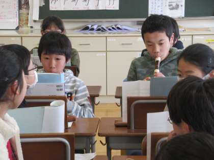 友だちの演奏を聴く姿も、温かい。最後には、全員で演奏を聴かせてくれました。