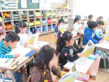 説明文を読んでいます。音読のしかたが上手なので、感心しました。