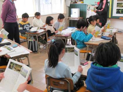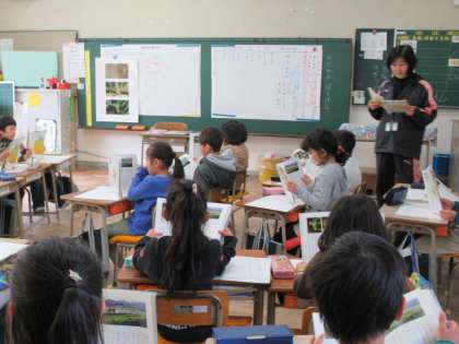 説明文を読んでいます。音読のしかたが上手なので、感心しました。