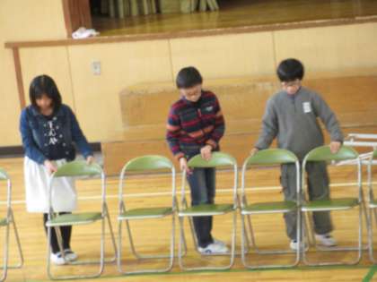 5年生が、明日の「6年生を送る会」の準備をしています。