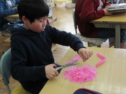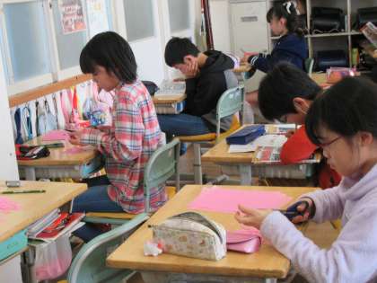 今日の午後には、「6年生を送る会」という大仕事を控えている5年生。ちょっとした時間も無駄にせず、最善を尽くしています。