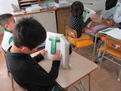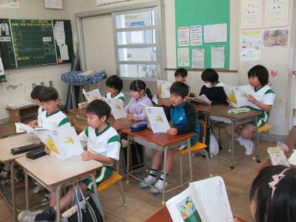 音読は、文章を読み解くために大変重要な活動であり、力でもあります。指でなぞりながら丁寧に読んでいる子もいます。