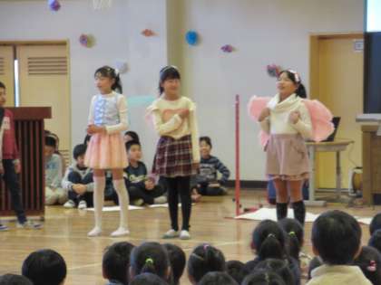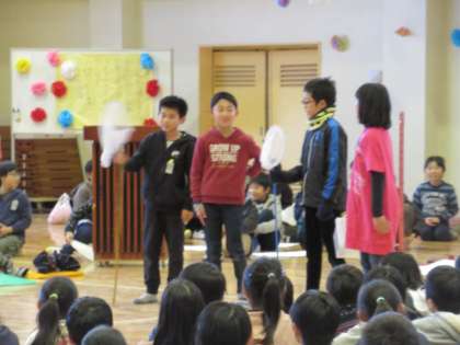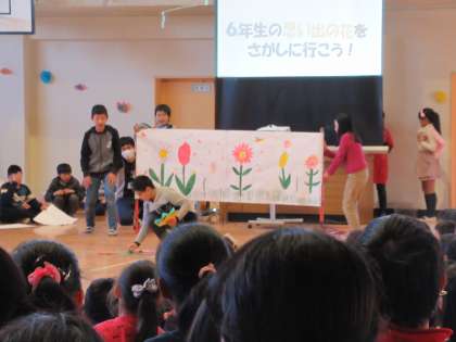 6年間の思い出をたどるコーナーです。パピオン3姉妹の案内で、わんぱくな子どもたちも、6年生の思い出の花を探しに行きます。