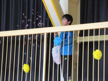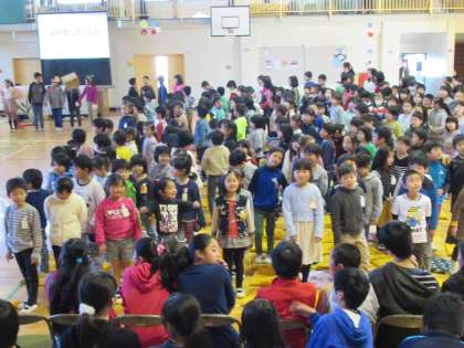 いよいよ、6年生に感謝の気持ちを込めた在校生全員合唱です。担当の5年生が歌詞を考え、各教室に指導に行ってくれたおかげで、感動の合唱になりました。涙を流す6年生がたくさんいたのは、在校生の気持ちが伝わったからなのでしょう。