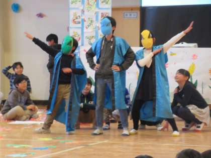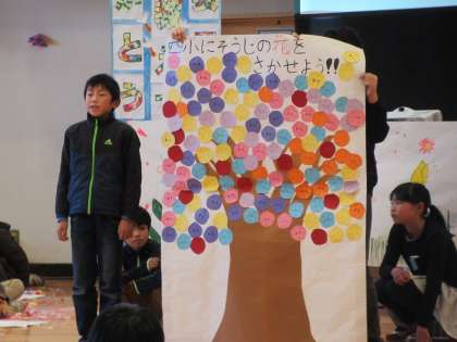 計画委員の引き継ぎ式です。6年生の後を引き継ぎ、四小をすてきな学校にすることを誓いました。