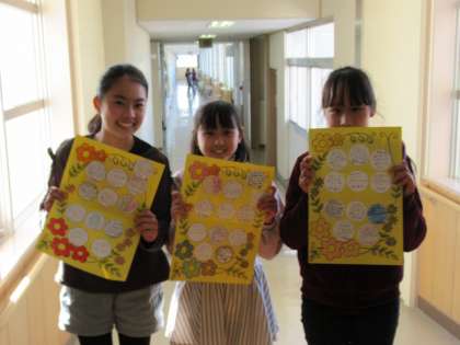 贈られた6年生も、贈った下級生も、にこにこしながらカードを見ていました。