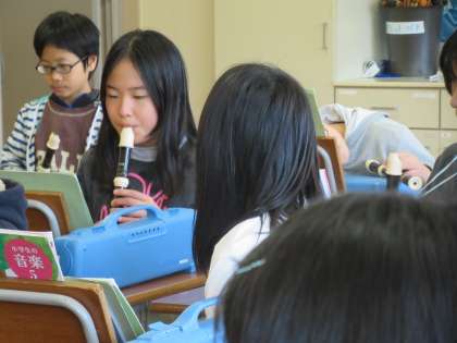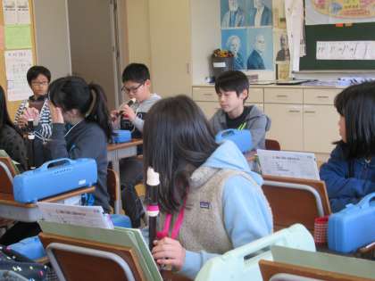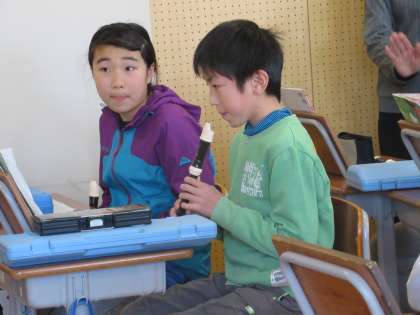 リコーダー演奏をしています。一人一人、高音がきれいに出るか確認して、合わせてみました。