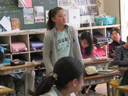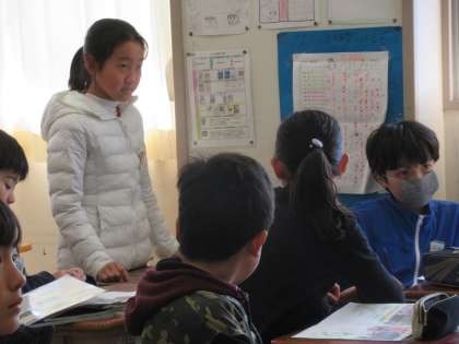 森林について、資料のグラフや写真などから考えたことを、伝え合いました。それぞれの考えの関連や違いが分かるように、先生が板書してくれました。