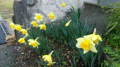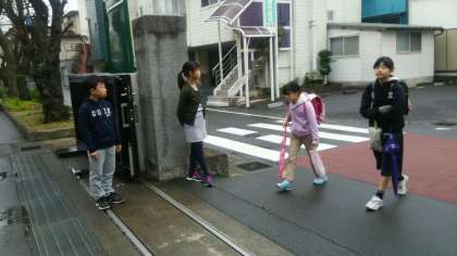 小雨のぱらつく朝です。春の花が通学路を彩ります。校門では、計画委員が出迎えてあいさつをしてくれます。
