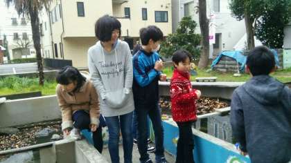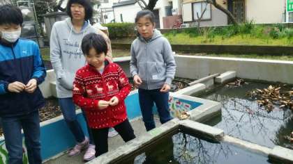委員会活動中です。昨日、今日は暖かいので、金魚の餌の食べがいいようです。毎朝、ご苦労様!