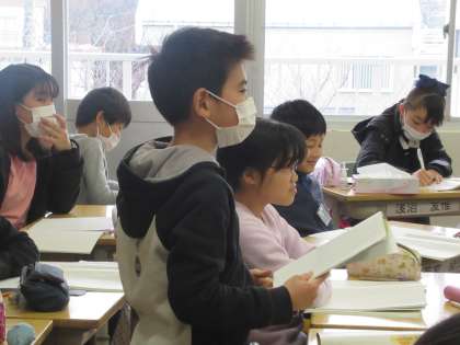 「大造じいさんとがん」を読んでいます。場面ごとに、内容が伝わるタイトルを考えました。