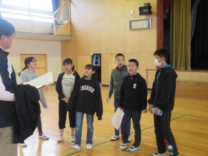 実行委員の子どもたちは、先生と一緒に進行の仕方を確認しました。司会・はじめの言葉・曲紹介・感想発表・終わりの言葉。それおぞれに役割をもって、会の進行を行います。言葉の内容や立つ位置など、意見を出し合っていました。